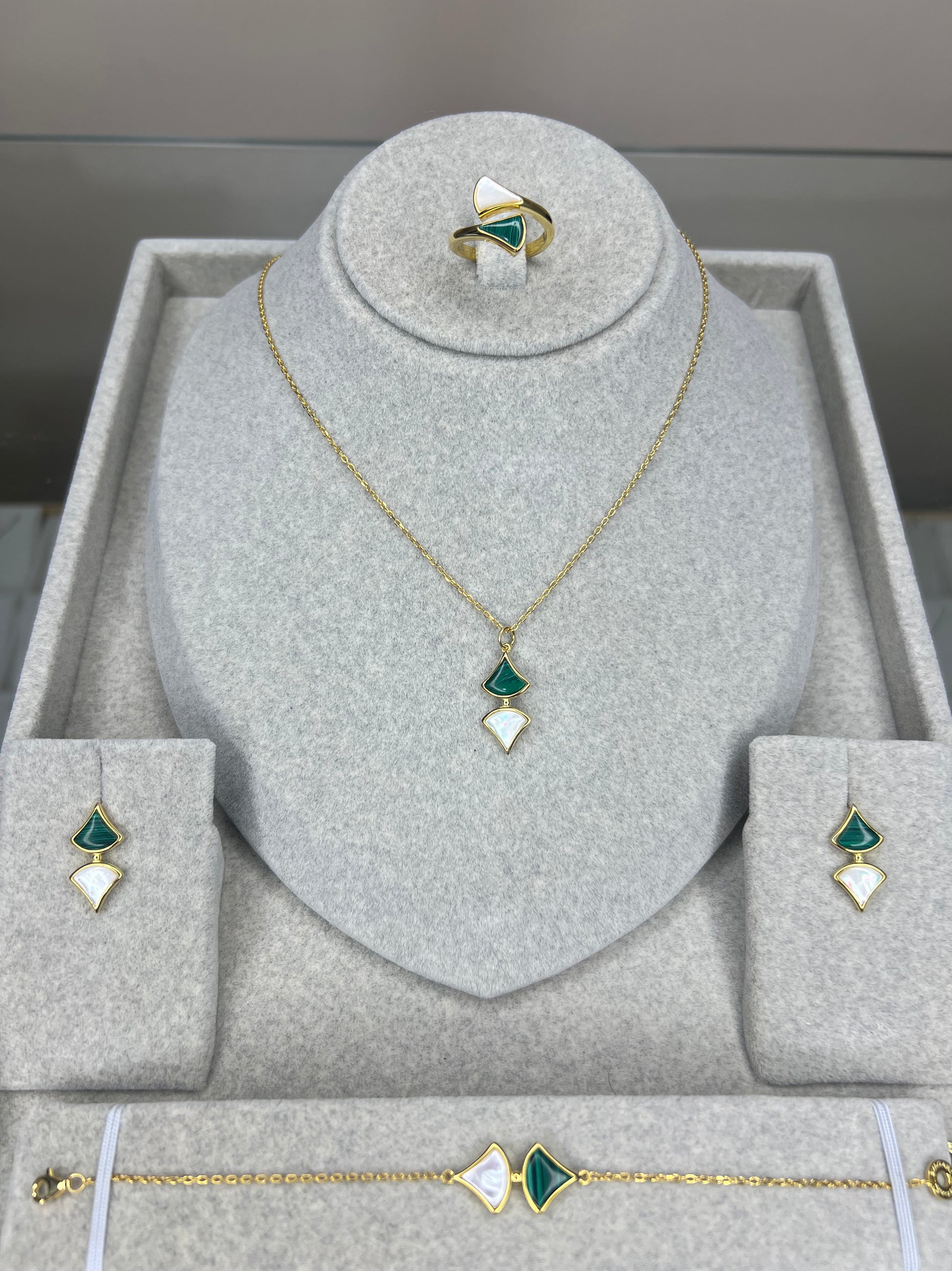 طقم أنيق مصنوع من فضة خالصة عيار 925، بتصميم راقٍ يبرز جمال التفاصيل ولمعان الفضة الأصلي. مقاوم للتغير والاسوداد، مناسب للاستخدام اليومي والمناسبات. خيار مثالي كهدية راقية أو لإكمال إطلالتك المميز